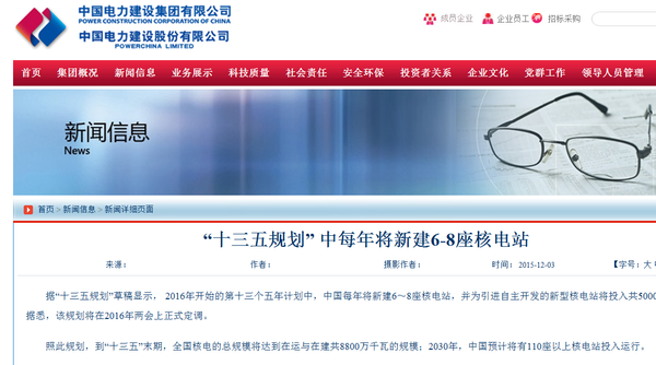 中国证券网讯 12月3日从中国电建官网获悉,据“十三五规划”草稿显示, 2016年开始的第十三个五年计划中,中国每年将新建6~8座核电站,并为引进自主开发的新型核电站将投入共5000亿元资金。据悉,该规划将在2016年两会上正式定调。