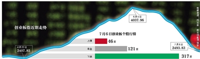 较6月初,7月6日创业板指接近腰斩,而同期沪指仅下跌约三成。