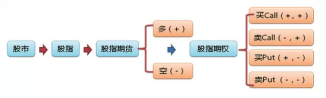 实际上,期权是一个像易经一样无穷无尽的组合,道家说:“道生一、一生二,二生三,三生万物。”期权也是这样的,如果我们说股市生了股指,股指是一个方向做多,股指又生了股指期货两个方向做多和做空,股市期货又生了股指期权,期权有四个方向,看涨、看跌、看不涨、看不跌。