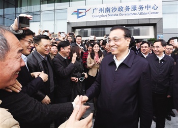 <p>李克强总理5日在广东自贸区南沙片区考察时说,广东是改革先行者和排头兵,要利用毗邻港澳的区位和专业人才优势,加强同港澳深度融合,优先发展金融、科研等高端服务业。光有高楼大厦、城市连片还不够,要更加注重里面容纳了什么,要看城市的发展内涵。中国政府网 |