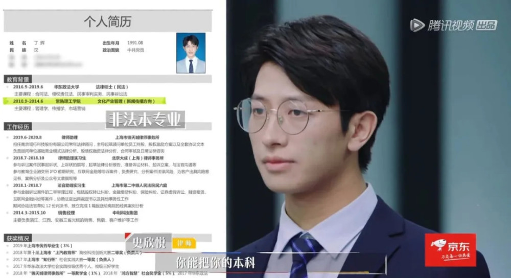 几乎所有嘉宾都站在了何炅一方,杨天真甚至说可以利用丁辉工作但不会喜欢这种性格的人。其实看丁辉的简历,也就是大学毕业后工作一年时间,马上就去考研了。但就是这一两年,导致他在求职时一直被刁难年龄。
