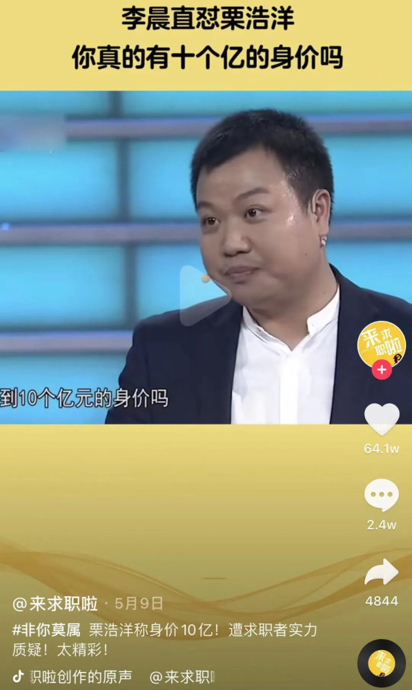 李晨在节目里直接问Boss栗浩洋:“你真的有十个亿的身价吗?”栗浩洋慌了开始扯公司估值,李晨再下一城:“股票可以套现,你的估值不能套现。”涂磊在旁双拳紧握:“信息量好大,我受不了啦!”