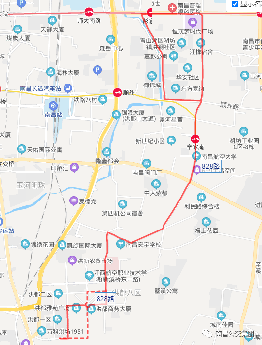 4、停靠站点:金域华府、高新南大道南口、高新南大道谢佛路口、佛塔幸福家园南、昌东广场、高新南大道惠民路口、福祥家园、阳光家园东门、胡村、李家巷、解放东路青山湖南大道口、解放西路城南大道口、辛家庵、新世纪小区、龙王庙、龙王庙市场、隆鑫广场、火车站东广场;
