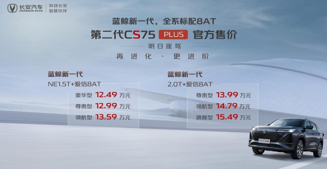 CS75系列车型是长安旗下的明星产品,目前已收获了150万用户的认可与支持。近日,第二代CS75PLUS正式迎来上市。共推出两个动力版本的6款车型,以爱信8AT、贯穿式流光LED前位灯、12.3英寸双联屏、540°高清全景影像、巨幕全景天窗、6安全气囊六大全系标配,官方指导价12.49万元-15.49万元。