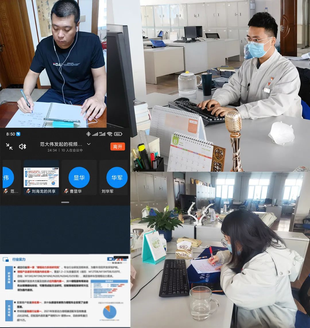 哈尔滨疫情以来,市场部不断优化创新工作模式,成立由高级项目经理以上人员牵头的多个市场开发团队,形成网格化市场开发推进结构,促进团队成员协同推进共同提升,同时由专人对市场开发工作统筹管理,组织制定潜在客户、重点客户、竞品市场等专项开发计划,发挥市场开发监督作用及靶向定位作用,全面提高市场开发工作效率及成功率。目前,公司市场开发项目数在国内独立汽油机企业首屈一指,百余个市场项目有序推进中。 市场部按照政府及公司防疫要求,开启新一轮“云”办公。既定市场开发“专项”工作按计划进行,与车厂项目交流顺利推进;每周组织部门市场开发工作例会2次,市场开发小组研讨会4次,市场开发专项研讨会2次,与车厂以电话会、视频会等形式交流近30余次;安排符合条件的人员值班及时处理日常工作,并协助居家办公人员查找传递资料,确保市场开发各项工作有条不紊进行。